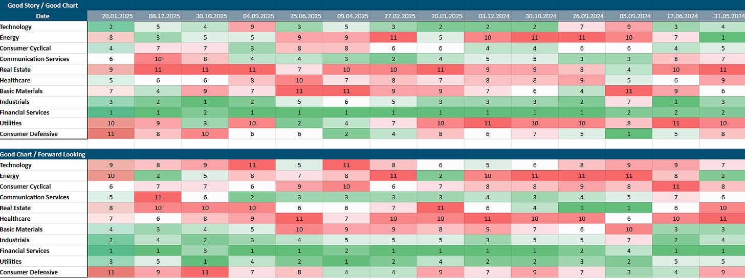 The Global Compounder Database (investable universe) tracks approximately 800+ of the world’s finest businesses, screened and monitored through our dual-lens framework. Each position is evaluated across our complete criteria set—from moat quality and earnings stability to price structure and relative strength. Added to this is our sector screening (we must not forget that three out of four stocks perform in line with their underlying sector).