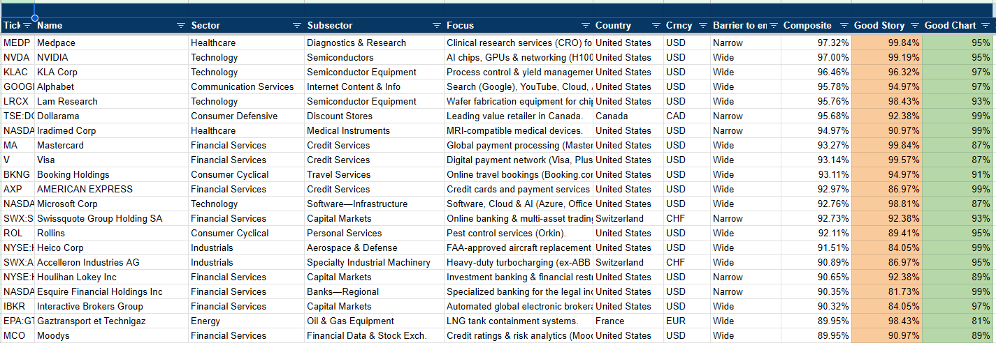 That’s why we built the Global Compounder Database—a curated screening tool that combines fundamental excellence with technical precision using our proprietary Good Story & Good Chart® framework.
